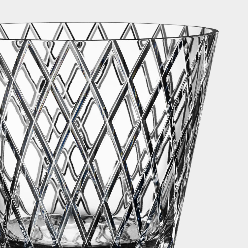 The clean-lined chessboard pattern of the Chess series combines Ingegerd Råman’s classic elegance with the glass-cutting technique for which Orrefors is world-renowned. The motif is traditional, the form austerely subtle, but the refractive cuts give the glass an unusual depth and beauty.