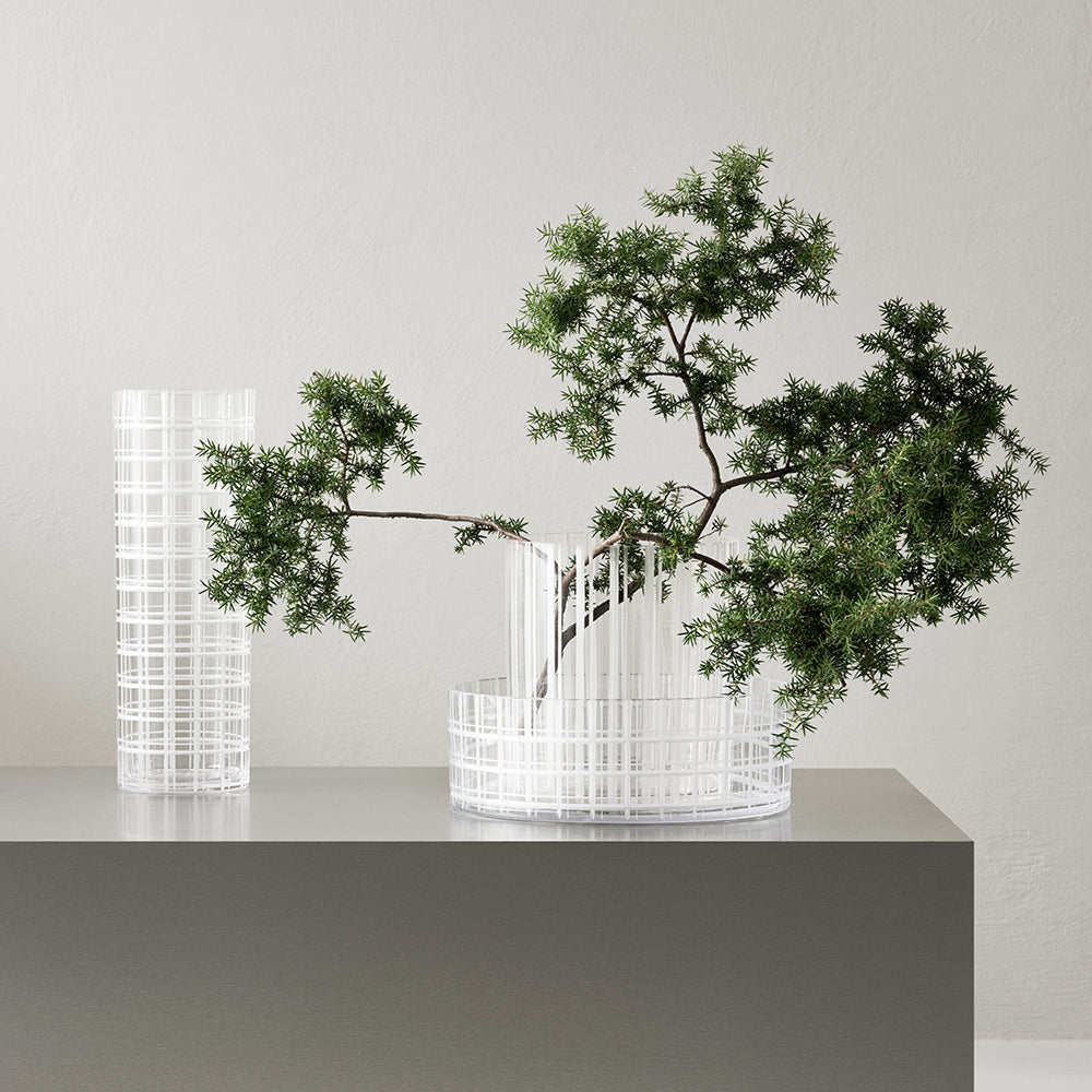 Cut In Number consists of four cylindrical objects: two bowls and two vases, which come in two different cut patterns. The collection was first launched in 2021.