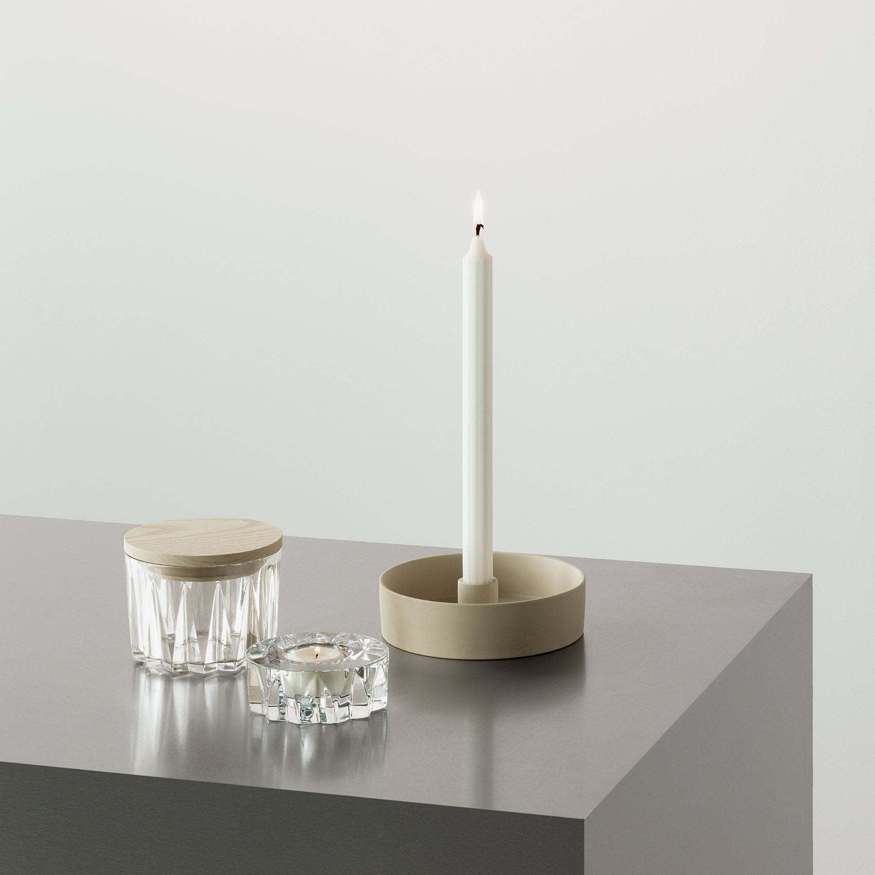 With Sarek, Lena Bergström has taken detailed influences from her childhood memories in the north of Sweden and designed a collection of bowls, a vase, and a candle holder. The cut facets on each item resemble the motif on wooden baskets made of plaited birch bark, which is traditional to the area where the designer grew up and has a clear connection to Swedish nature. The collection was launched in 2017 and designed in collaboration with the Volvo Cars Design Team.