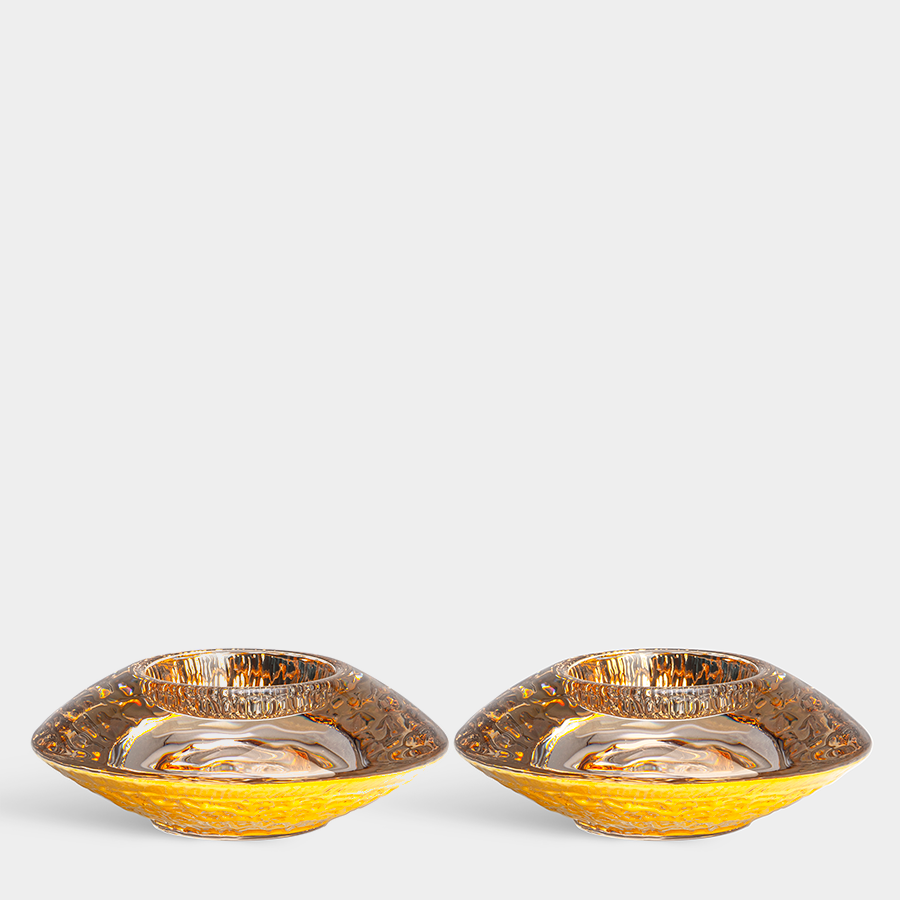 The Discus Votive in gold from Orrefors, available as a set of 2, has an optical effect in the base, creating beautiful reflections of light in the crystal. Designed by Lars Hellsten.